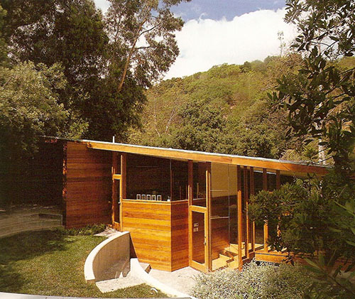During the 1950s and 1960s John Lautner’s office developed a significant range of houses built with wooden structures and cladding, using glass to create a new relationship between inside and outside.