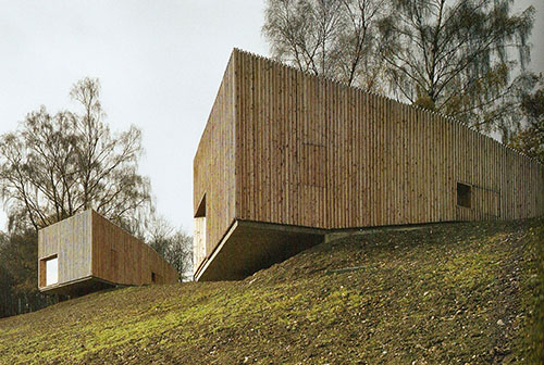 These houses are articulated as abstract objects in a neutral environment. They interact with the environment through their wooden skins that provide protection and their characteristic personality.